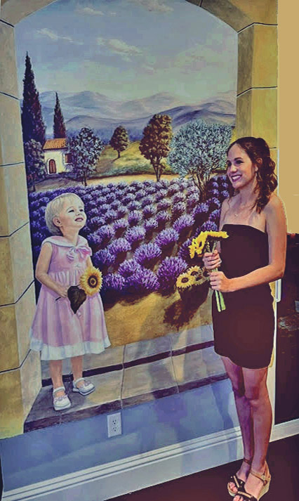 18th Birthday girl meets herself when she was 3. Mural with Amanda in Provence, France by Artist Tatiana Rugers