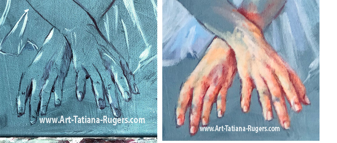 This is detail and progress of my new painting. Temporary name for it right now “Ballerina hands” but I might change the name at the end of painting. Stay tuned. To see art for sale by Tatiana Rugers –>Follow my posts here and on Instagram–>