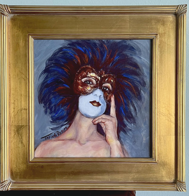 My painting finally got dressed up n a beautiful frame. “Night after Venice Masquerade”. Available at –>>> To contact artist for inquiries->to see Special prices for Valentine’s -> How to commission a portrait or a custom Art -> Acquire my work –>art for sale by Tatiana Rugers –>