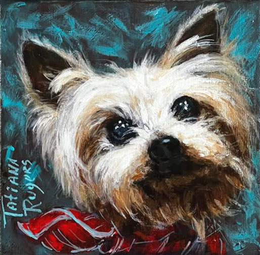We love our dogs, and I love painting them! On that photo-one of my previous commissions-portrait of Sophie. To commission a portrait or if you have any questions or requests – you can contact me – contact Artist -> with your inquiries. Portrait-How to commission –> To see/ buy paintings by Artist Tatiana Rugers –>>