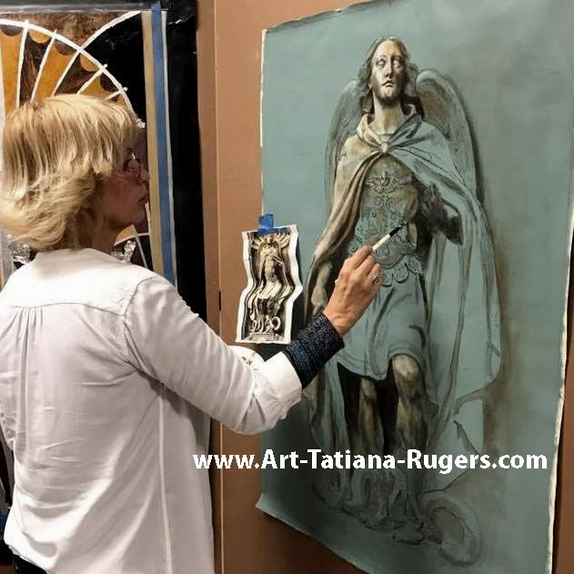 Art for sale * Portraits/Commissions * Trompe l’Oeil * News * About * Classes *Murals * Archive * Contact Above is photo of me when I was starting painting of that Trompe l’Oeil as a part of my demonstration during International Salon NYC. Below is the finished painting which is available for purchase. Inspiration forContinue reading “Trompe l’Oeil of Archangel Michael. Artist Tatiana Rugers. Florida”